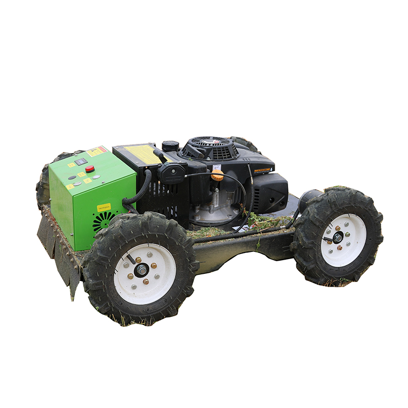 4. Gran adaptabilidad al terreno: Su capacidad de ascenso de 30° le permite manejar fácilmente terrenos inclinados, y el chasis ajustable manualmente permite ajustes flexibles según el terreno real, asegurando un corte uniforme y uniforme. 5. Funcionamiento de alta eficiencia: El ancho de corte de 550 mm, combinado con una velocidad de trabajo de 5 km/h, mejora significativamente la eficiencia del trabajo y garantiza la calidad del corte, lo que lo convierte en la opción ideal para el mantenimiento de céspedes medianos.